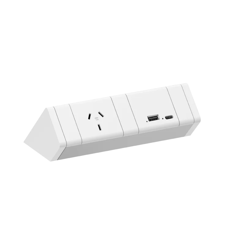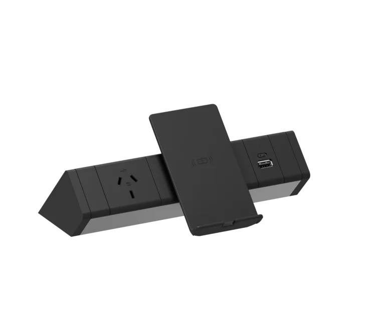 The CMS Athena power rail has undergone re-invention to deliver cutting-edge technology services coupled with easier and more versatile installation options while retaining its timeless design. Now available to be specified with advanced inline services like USB-A/C fast charge, as well as our Helipad and Helistand wireless module, Athenas form follows function. Installing Athena is improved with simple snap-in clamps and self-fastening paddles for top-sided mounting. Suit top thickness of 20-35mm