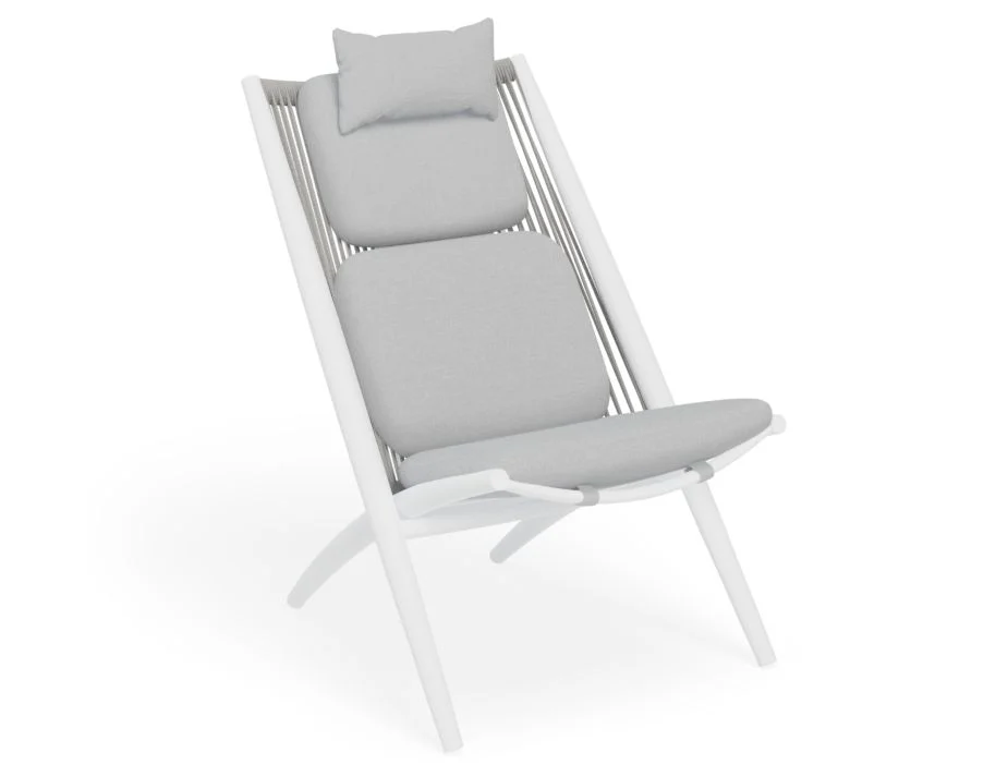 The Minori Lounge Chair by Bent Design Studio is the perfect addition to any outdoor commercial or hospitality space. With a comfortable seat width of 56.6cm, a seat depth of 51.5cm, and a seat height of 47cm, this lounge chair provides comfort and relaxation in any outdoor environment. The powdercoated aluminium frame comes in a stylish matt white color, while the light grey textilene fabric cushion adds a touch of sophistication.